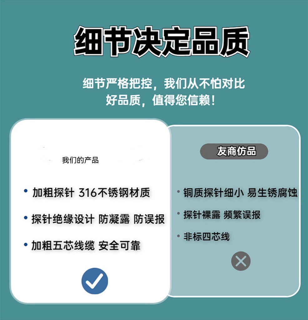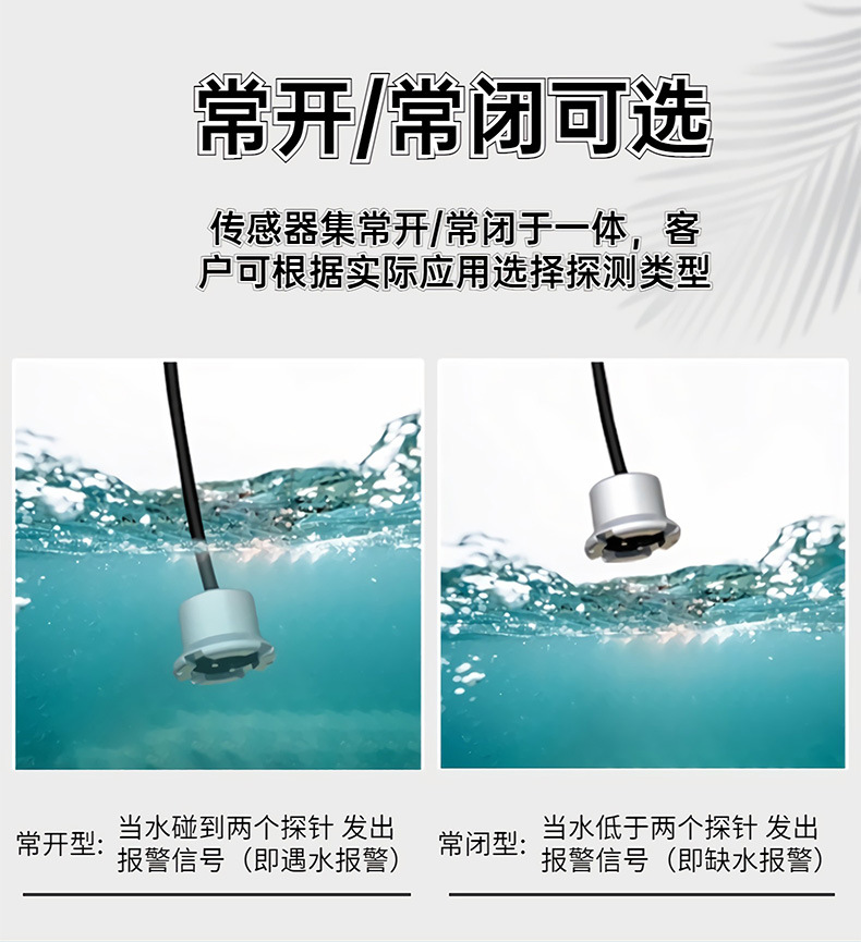 (3)设计有固定安装孔位,根据需要可以调节感应深度感应,在积水达到一定高度时报警。 -