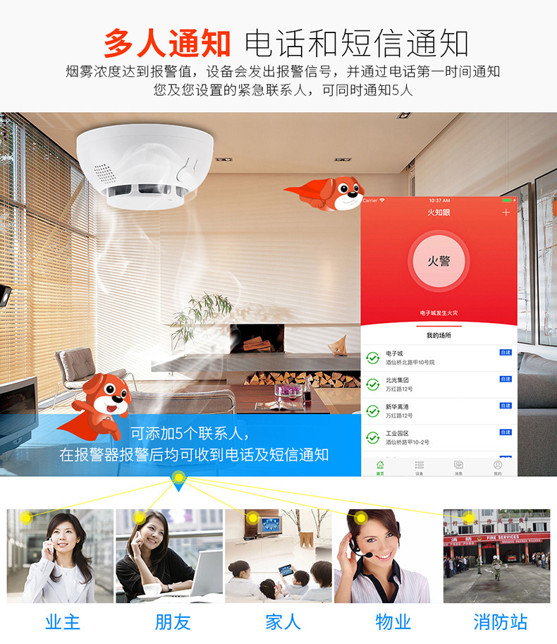 5. 易安装,易维护,可通过《火知眼》APP 对报警器的状态实时监控。